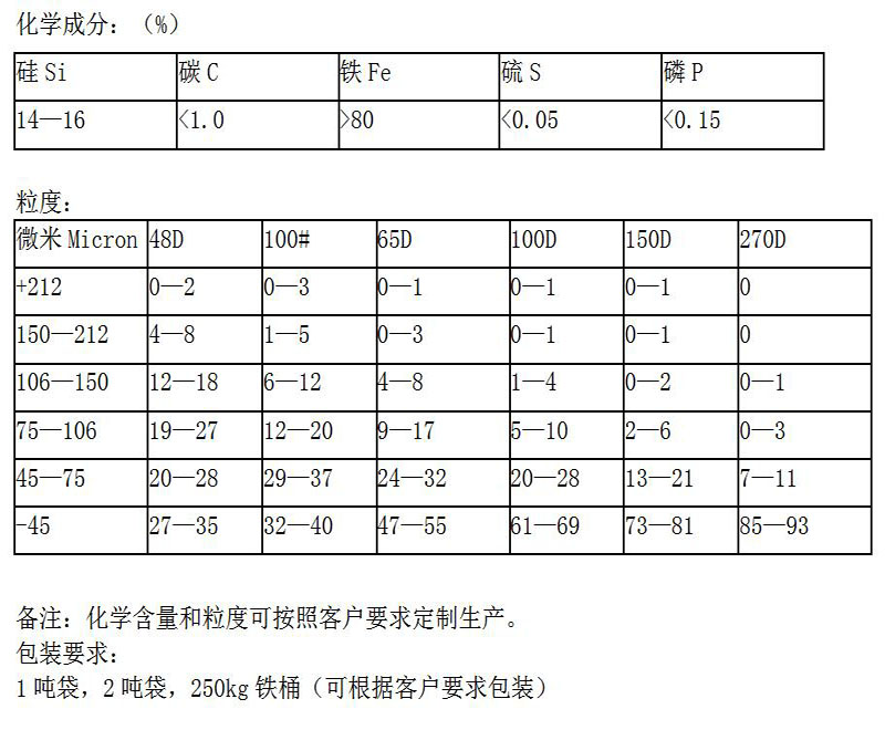贵州重介质硅铁粉,贵州重介质选矿是严格按密度分选的,与矿粒的粒度、形状无关。介质常表面较高的粘度,严重影响颗粒的沉降速度。若给矿粒度大,重矿物沉降块,对分层精确性的影响倒不是太明显;但若给矿粒度小,则往往因有一部分粒度小的重矿物颗粒并没有来得及沉降到底部,便被介质带到机外,从而降低分选效率。因此,在分选关预先筛分出细小矿粒还是必要的。