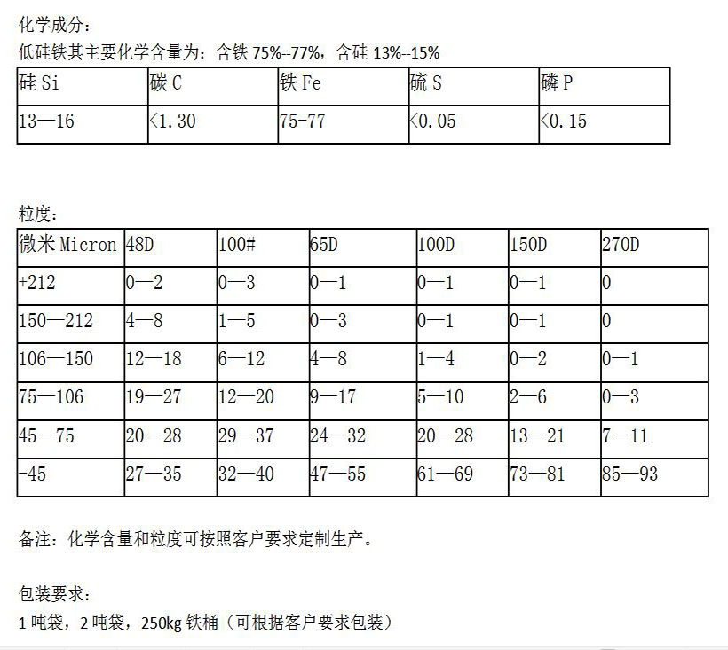 选矿用贵州低硅铁粉是一种粉末状的金属粉,主要是由电炉冶炼而成的。一般情况下贵州选矿用低硅铁粉主要用于废铝分选,金矿,钻石矿,铜矿等。贵州重介质选矿的原理很好理解,任何重力分选过程,都是在一定的介质中进行。若所使用的分选介质其密度大于每立方米1克时,这种介质称为重介质。