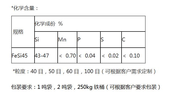 贵州45雾化硅铁的化学名称是45雾化硅铁,采用的生产工艺是电炉冶炼,真空水雾化处理,烘干,筛分。一般情况下,45雾化硅铁主要用于焊接材料方面,特种电焊条生产药皮中辅料的一种。